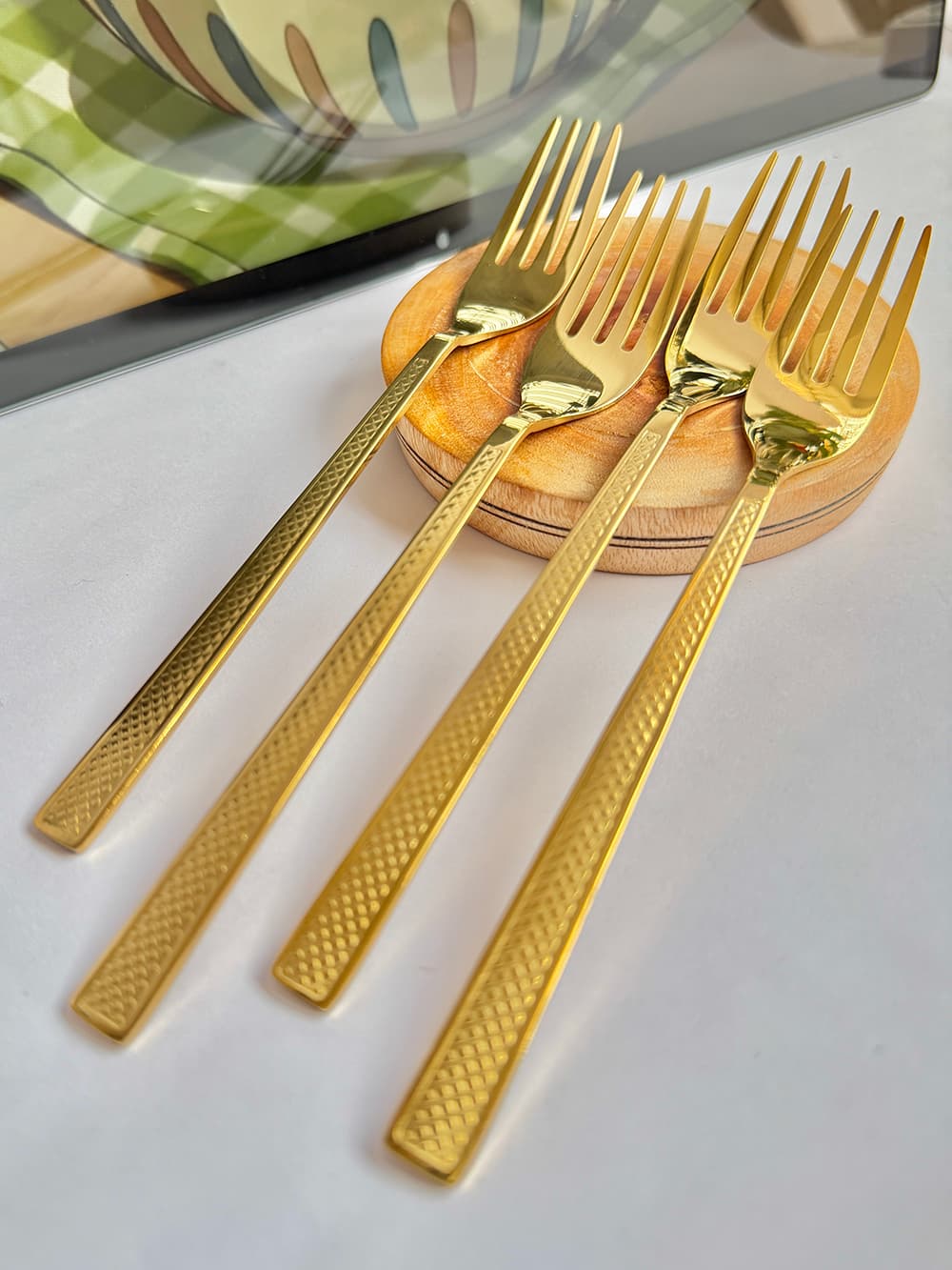 Fork, Goldenগোল্ডেন কাটা চামচ (৬ পিস সেট) | Golden Fork Spoon (6 Pcs Set)